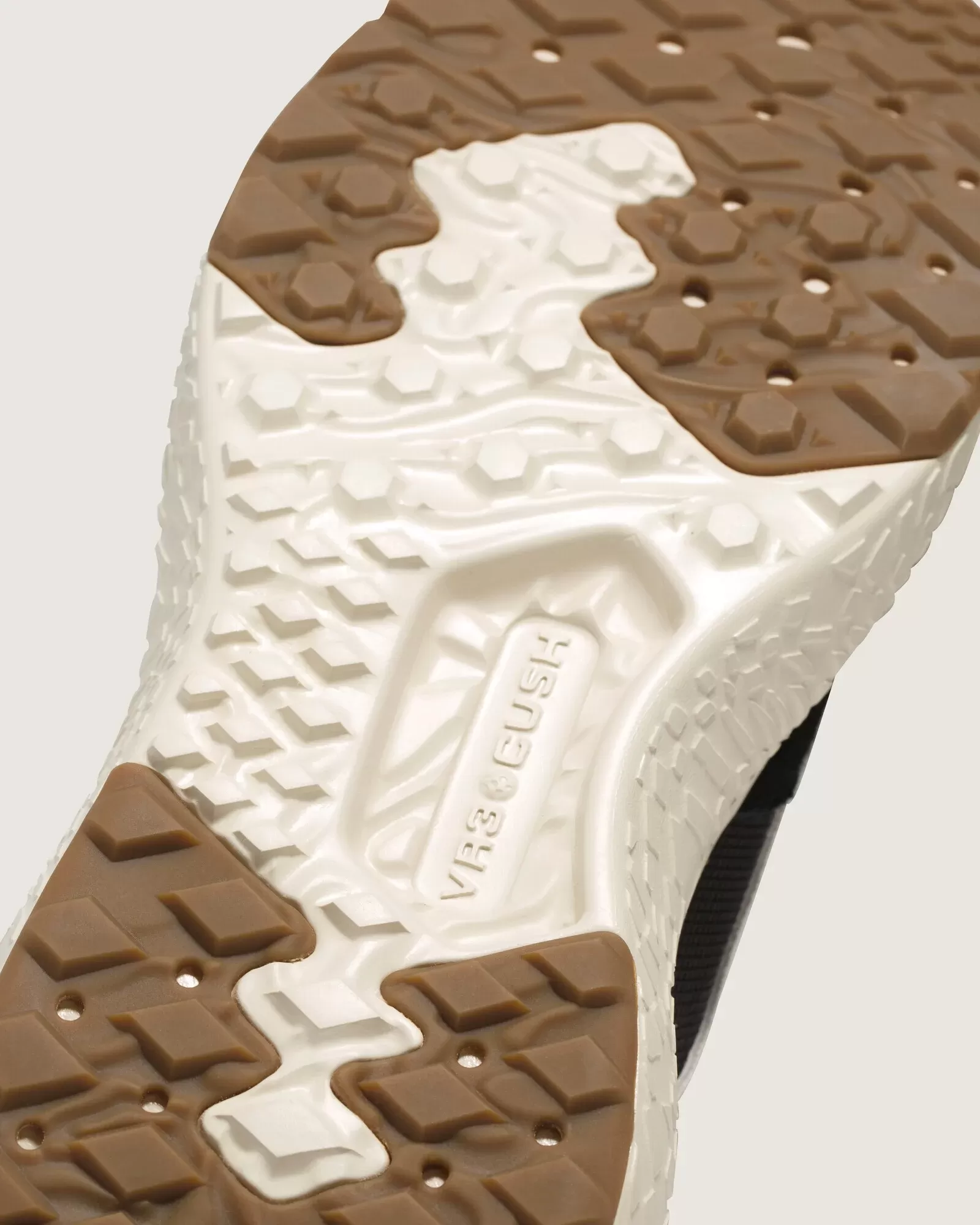 Sola VR3Waffle: 60% borracha natural cultivada de forma regenerativa, mantendo a clássica aderência Vans e contribuindo para a saúde do solo e biodiversidade.
